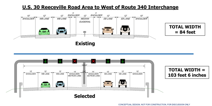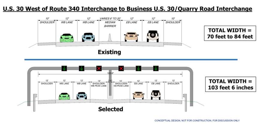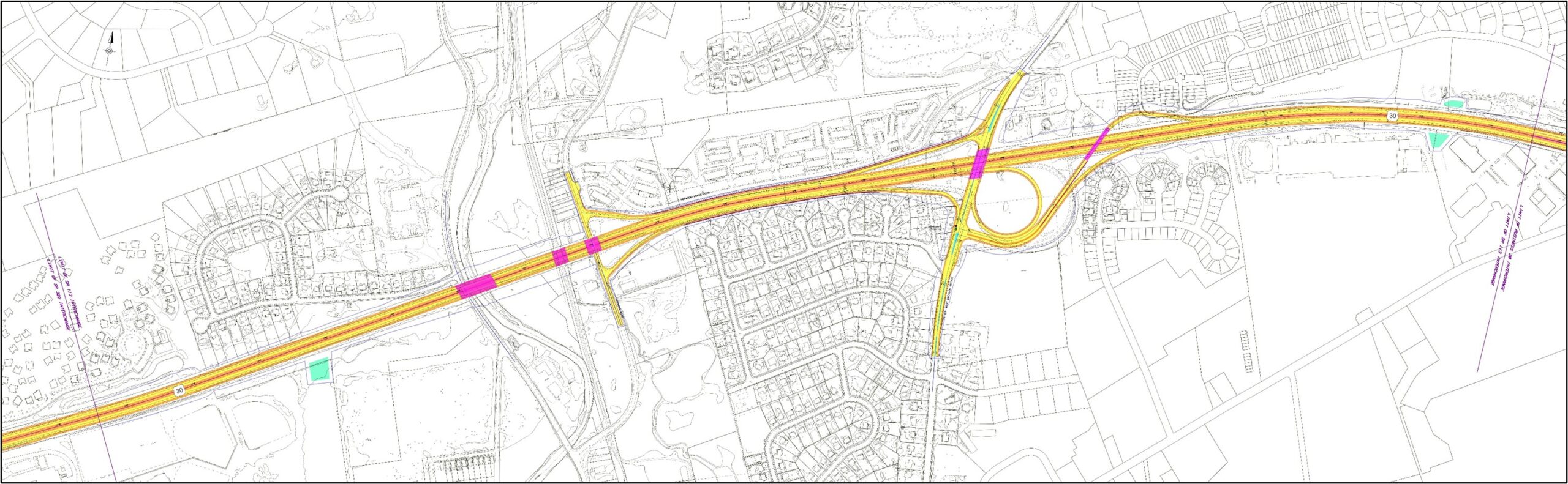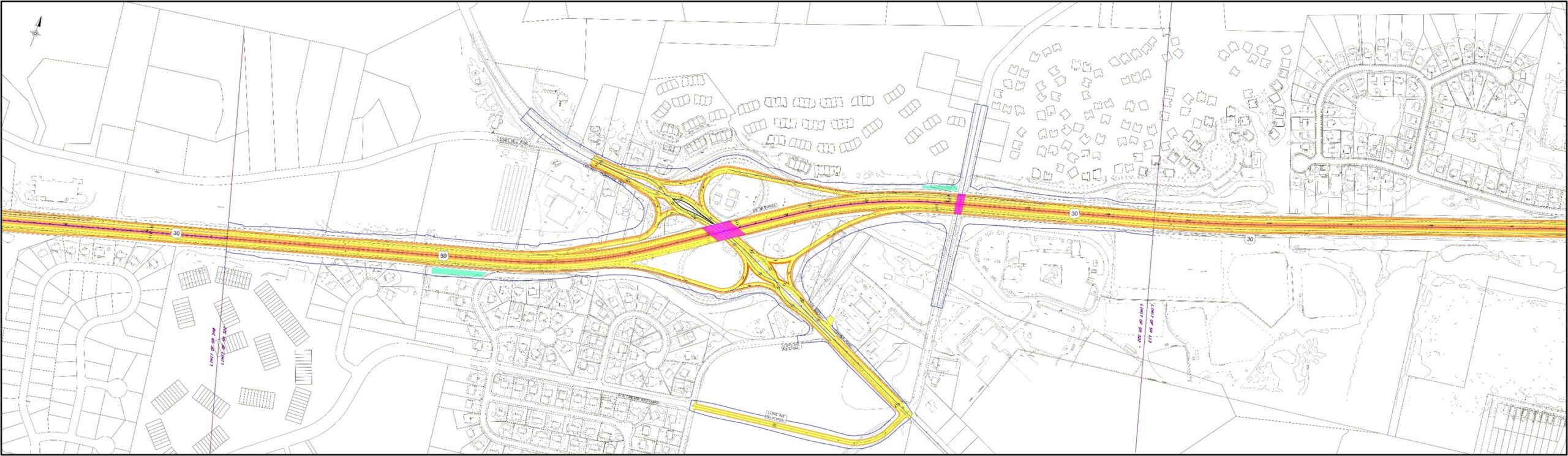 - Single Lane Roundabout at the U.S. 30 westbound ramp intersection, eliminating the existing traffic signal.