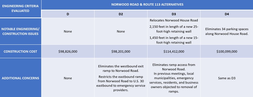 NORWOOD ROAD & ROUTE 113 REVISED INTERCHANGE ALTERNATIVES FOR PUBLIC REVIEW & INPUT
