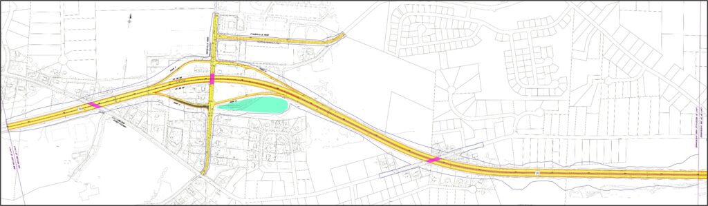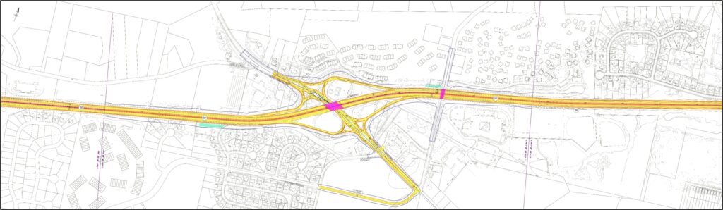 - Full Diamond Interchange, larger than the existing interchange to accommodate longer ramps.