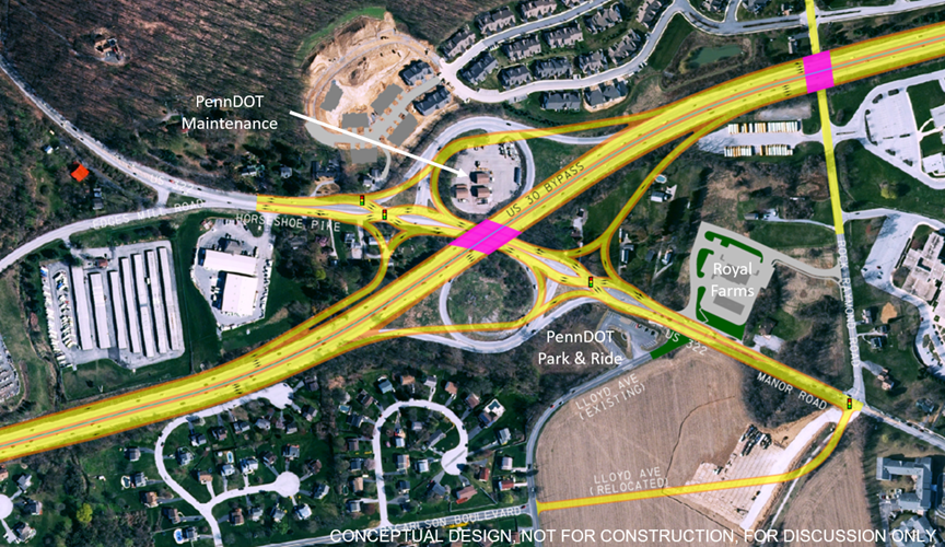 - Driveways for the PennDOT Park & Ride and the Royal Farms are impacted, which may result in access restrictions to right-in/right-out movements only.