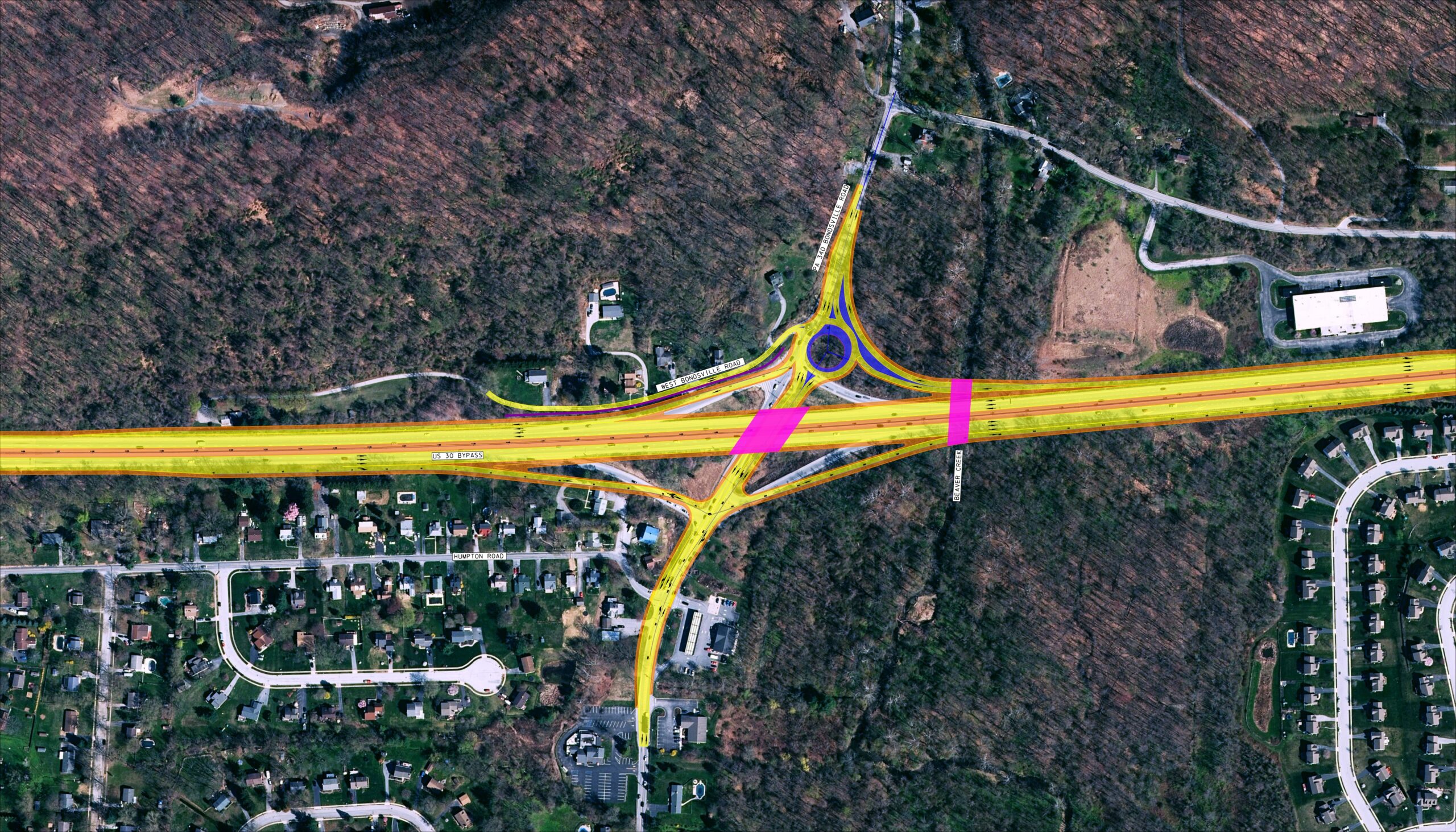 The results of the conceptual engineering evaluation and the feedback from stakeholders and the public have been reviewed, and an alternative has been selected for the Route 340 Interchange. Alternative C – Traditional Diamond Interchange with a roundabout (as presented in the December 2021 through February 2022 online virtual public involvement process) has been selected to proceed to Preliminary Engineering. Additional public meetings will be held in the future, as the interchange design is completed and additional details are available.