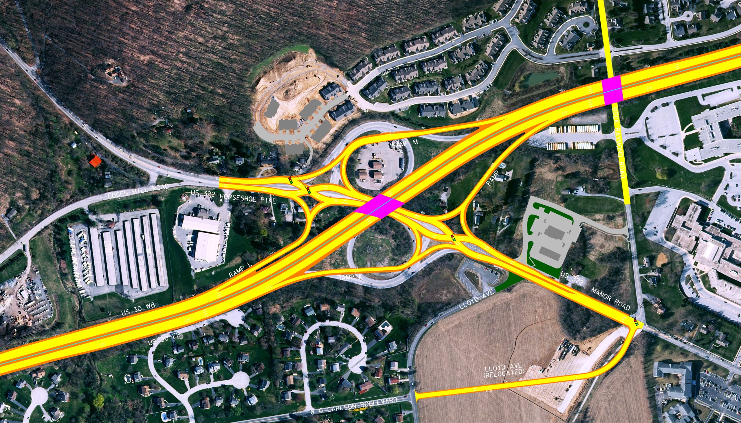 In December 2021 through February 2022, an online virtual experience was hosted to present the conceptual design work and alternatives for the Eastern Project Area (Section CER), from just west of the Reeceville Road interchange to the Quarry Road / Business U.S. 30 interchange for public input. The information presented at that time can be viewed here.